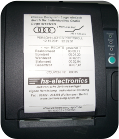 Ausdruck mit Sponsorlogo und die gemessenen Zeiten