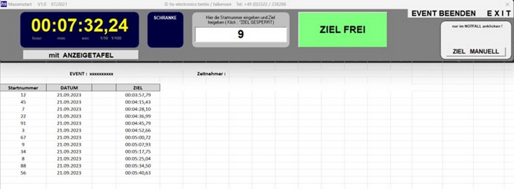 Die erfassten Zeiten werden im Zieleinlauf sofort in eine Tabelle abgespeichert.