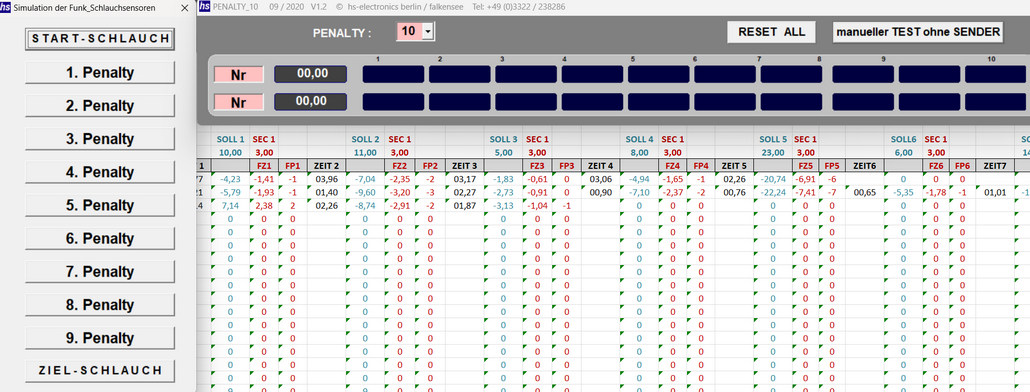 Die Penalty - PC - Software für bis zu 11 Schlauchsensoren.